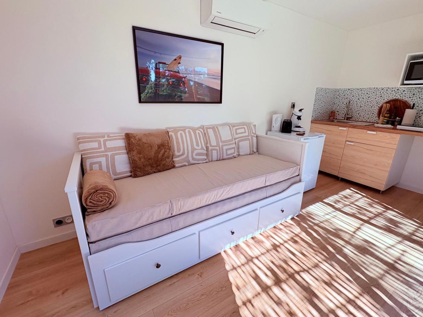 Appartement 1 Chambre. Featuring a private entrance, this air-conditioned apartment consists of a kitchen, 1 bedroom and 1 bathroom with a walk-in shower and a hairdryer. Guests can make meals in the kitchen that is equipped with a stovetop, a refrigerator, kitchenware and a microwave. The apartment provides a tea and coffee maker, a dining area, heating as well as a terrace with garden views. The unit offers 1 bed.