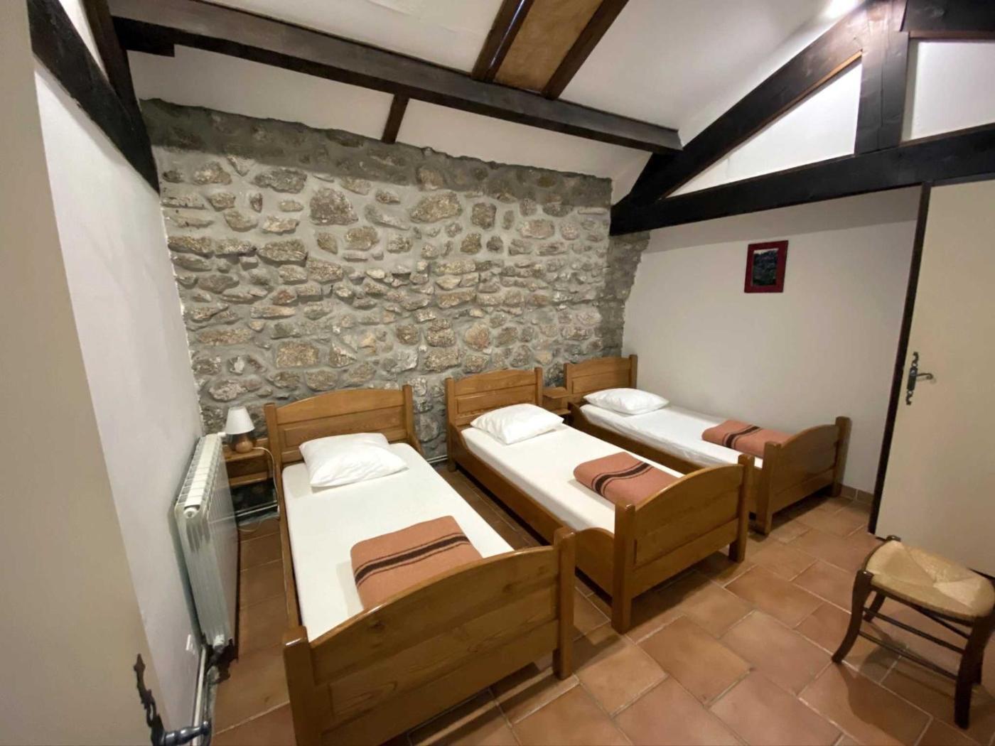 Chambre Triple. Featuring free toiletries, this triple room includes a private bathroom with a bath. The triple room has tiled floors and features a private entrance, a wardrobe and garden views. The unit has 3 beds. ;