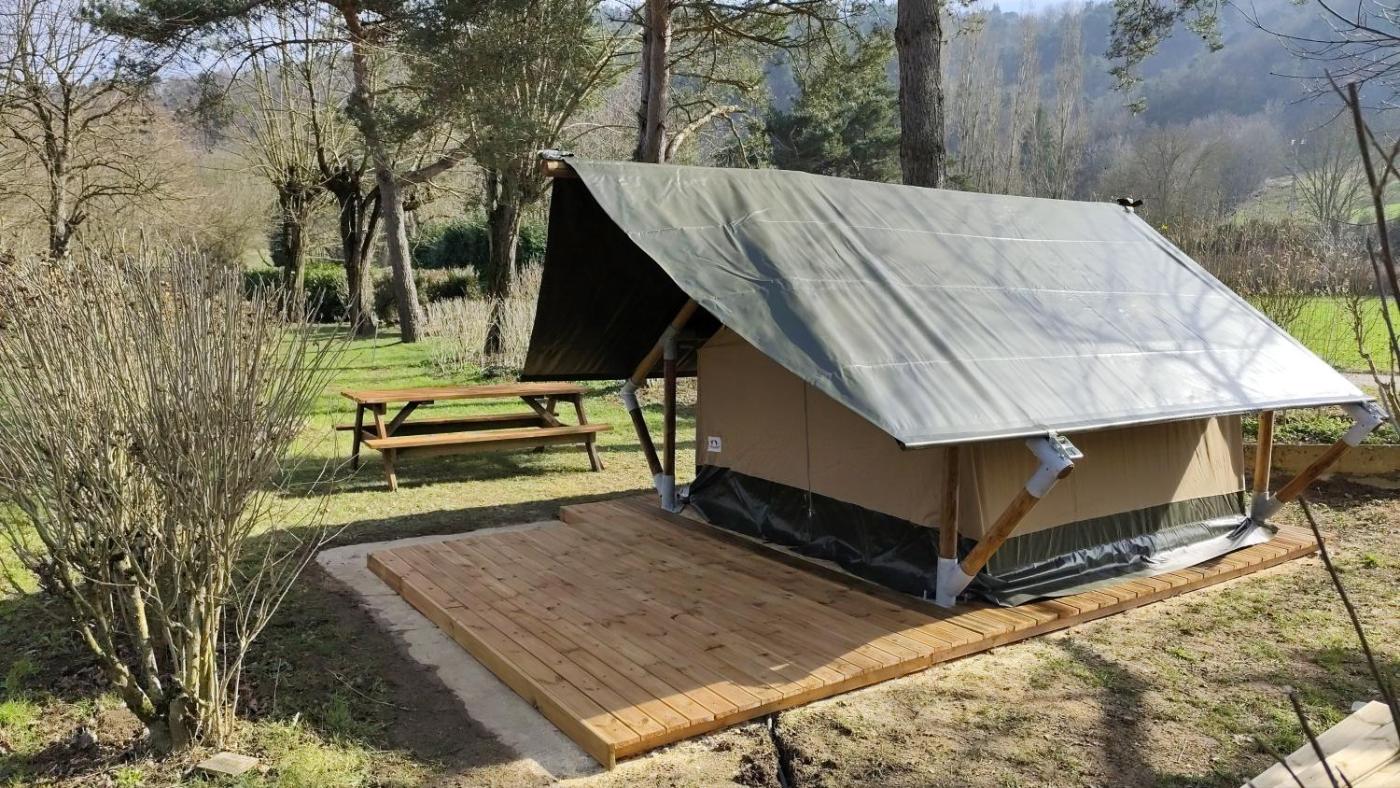 Tente. The tent features a dining area, a dressing room and an outdoor dining area. The unit has 2 beds. ;