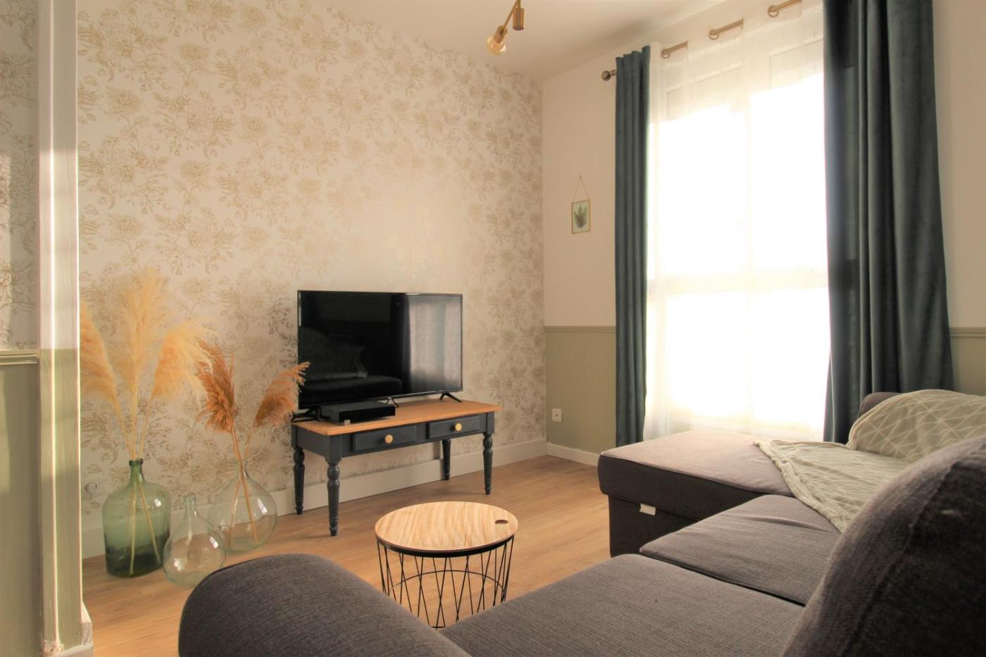 Appartement 1 Chambre. Boasting a private entrance, this apartment includes 1 living room, 1 separate bedroom and 1 bathroom with a shower and a hairdryer. In the kitchen, guests will find a stovetop, a refrigerator, kitchenware and an oven. The apartment has parquet floors, a seating area with a flat-screen TV, a washing machine, a tea and coffee maker as well as garden views. The unit has 2 beds.