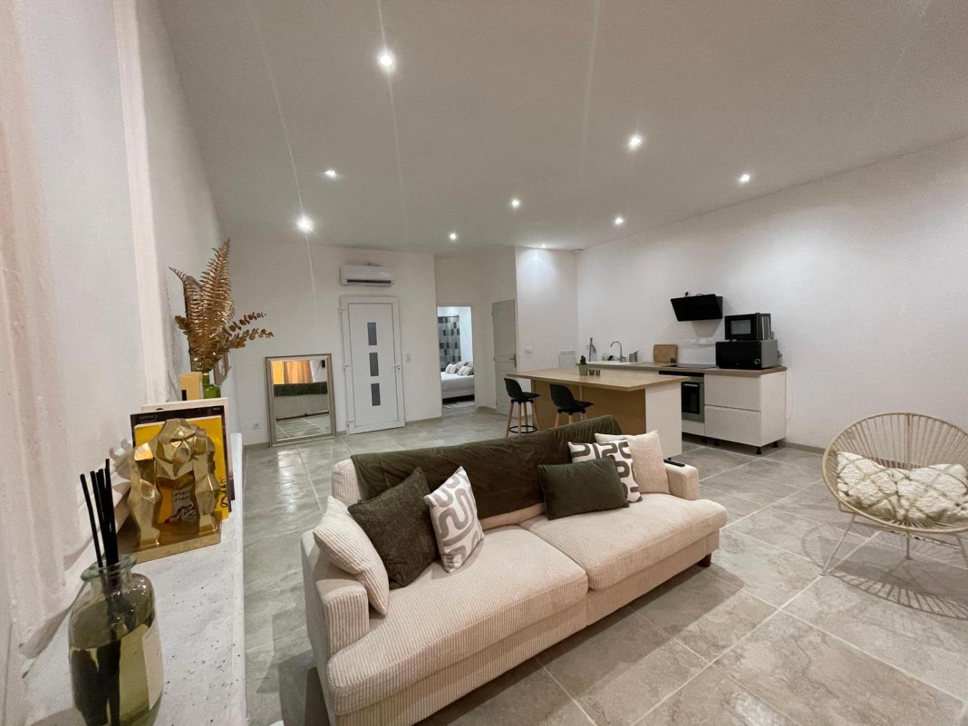 Appartement 1 Chambre. The kitchen is fitted with a refrigerator, a dishwasher and a microwave. The air-conditioned apartment offers a flat-screen TV, a coffee machine, a dining area and a sofa. The unit has 1 bed.