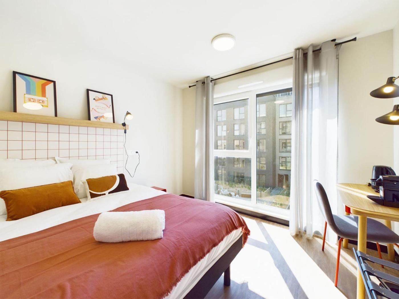 Appartement M Standard sans Climatisation. Doté d’une entrée privée, cet appartement comprend un coin salon, 1 chambre, ainsi qu’une salle de bains avec douche et sèche-cheveux. La cuisine bien équipée est munie de plaques de cuisson, d’un réfrigérateur, d’un lave-vaisselle et d’ustensiles. Cet appartement insonorisé dispose dune armoire, dun coin repas, dun plateaubouilloire et dune télévision par câble à écran plat. Ce logement comporte 1 lit. ;