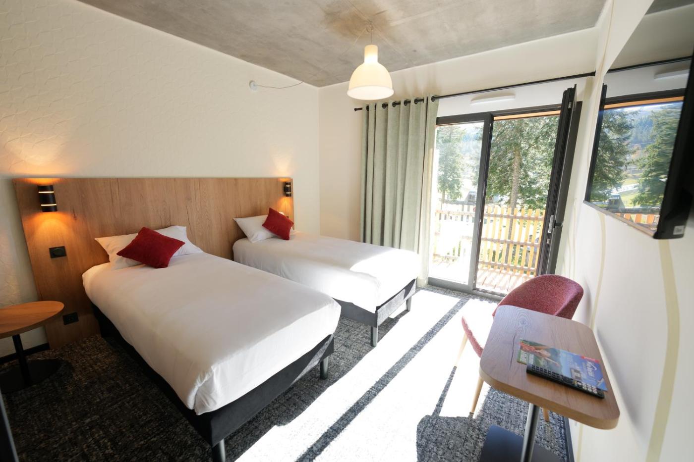 Chambre Double. Cette chambre dispose dun balcon avec vue sur la station de ski, dune télévision et dune salle de bains privative avec douche. ;