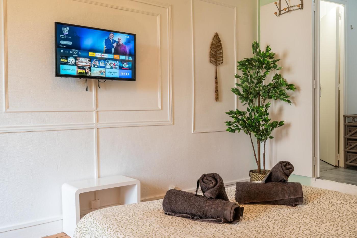 Appartement 1 Chambre. This apartment is comprised of a kitchen, a seating area, 1 separate bedroom and 1 bathroom with a shower and a hairdryer. In the fully equipped kitchen, guests will find a stovetop, a refrigerator, kitchenware and a microwave. The apartment offers a washing machine, a tea and coffee maker, a dining area, a wardrobe and a flat-screen TV with streaming services. The unit offers 1 bed.