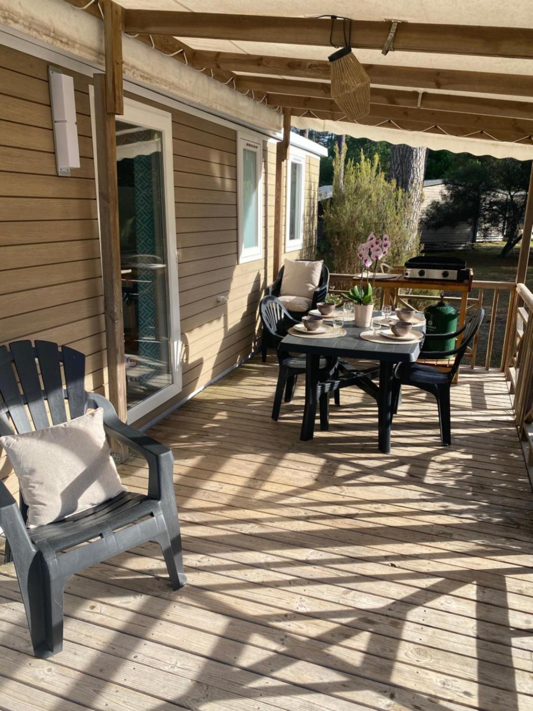 Mobile Home. Guests will find a stovetop, a refrigerator, kitchenware and an oven in the fully equipped kitchen. The mobile home also provides guests with a barbecue. Featuring a terrace with garden views, this mobile home also provides air conditioning and a flat-screen TV. The unit offers 5 beds.