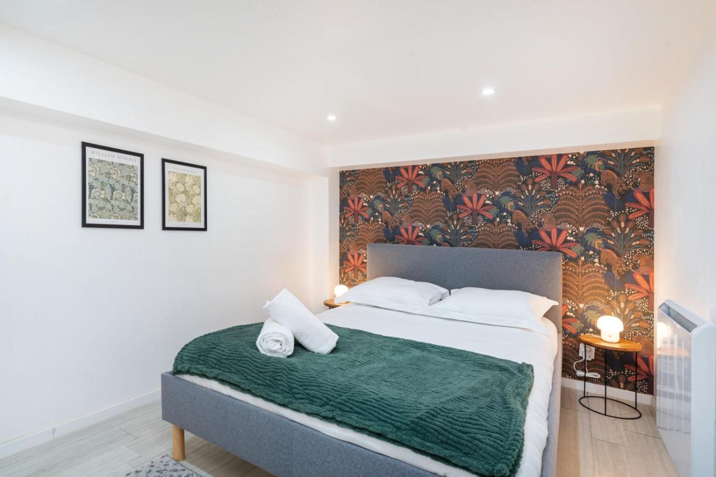 Appartement 2 Chambres. The sauna is the standout feature of this apartment. Boasting a private entrance, this spacious apartment also features 2 bedrooms, a seating area and 1 bathroom with a shower and a hairdryer. The well-fitted kitchen has a stovetop, a refrigerator, a dishwasher and kitchenware. The air-conditioned apartment features a flat-screen TV with streaming services, a washing machine, soundproof walls, a minibar as well as city views. The unit has 2 beds.