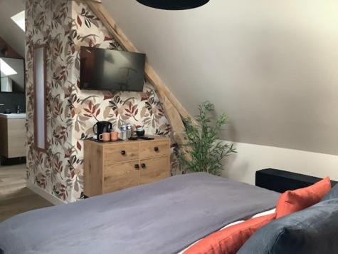 Grande Chambre Double. The spacious double room offers a tea and coffee maker, a wardrobe, as well as a private bathroom featuring a shower and a hairdryer. This double room provides heating, a flat-screen TV and a terrace. The unit offers 1 bed. ;
